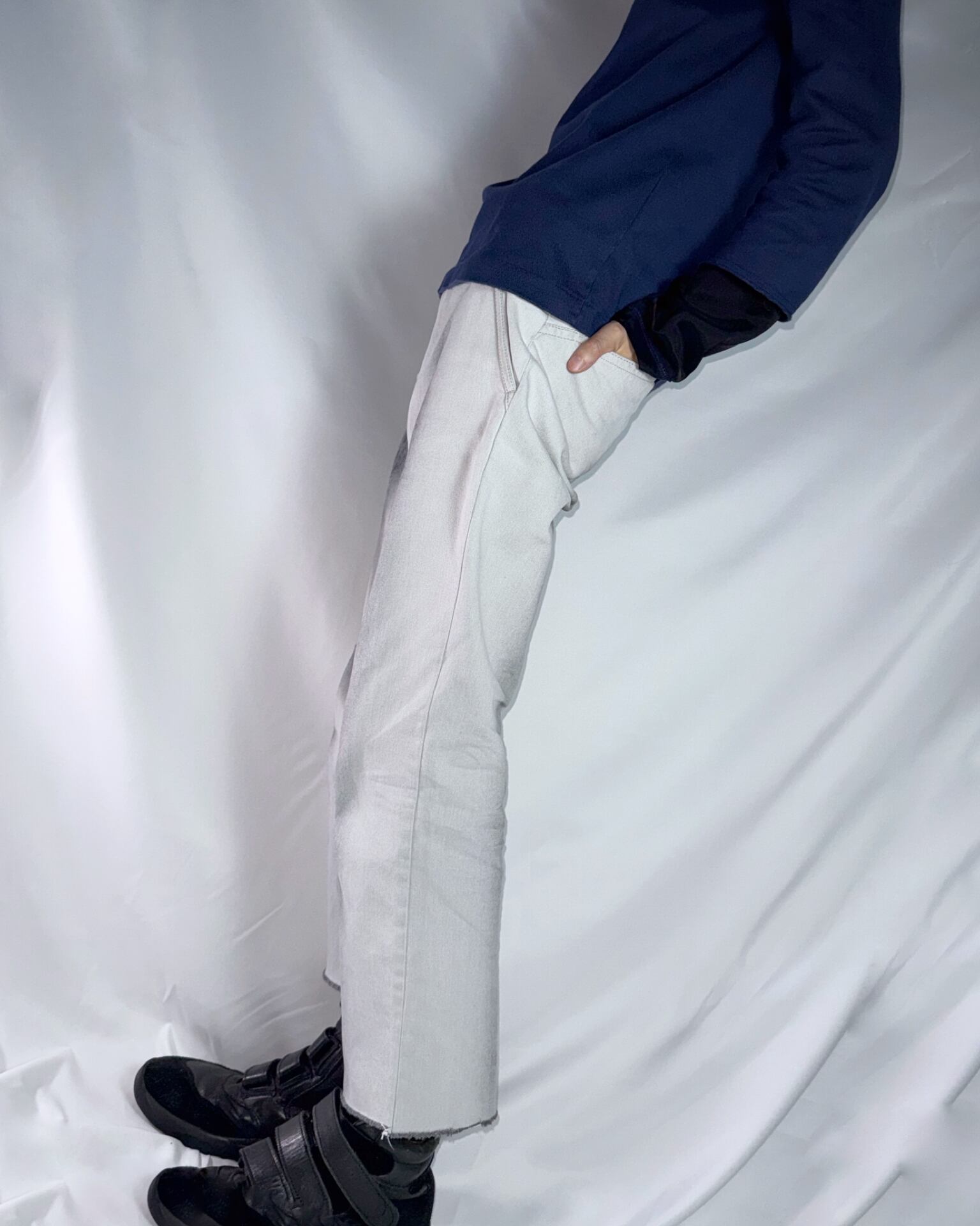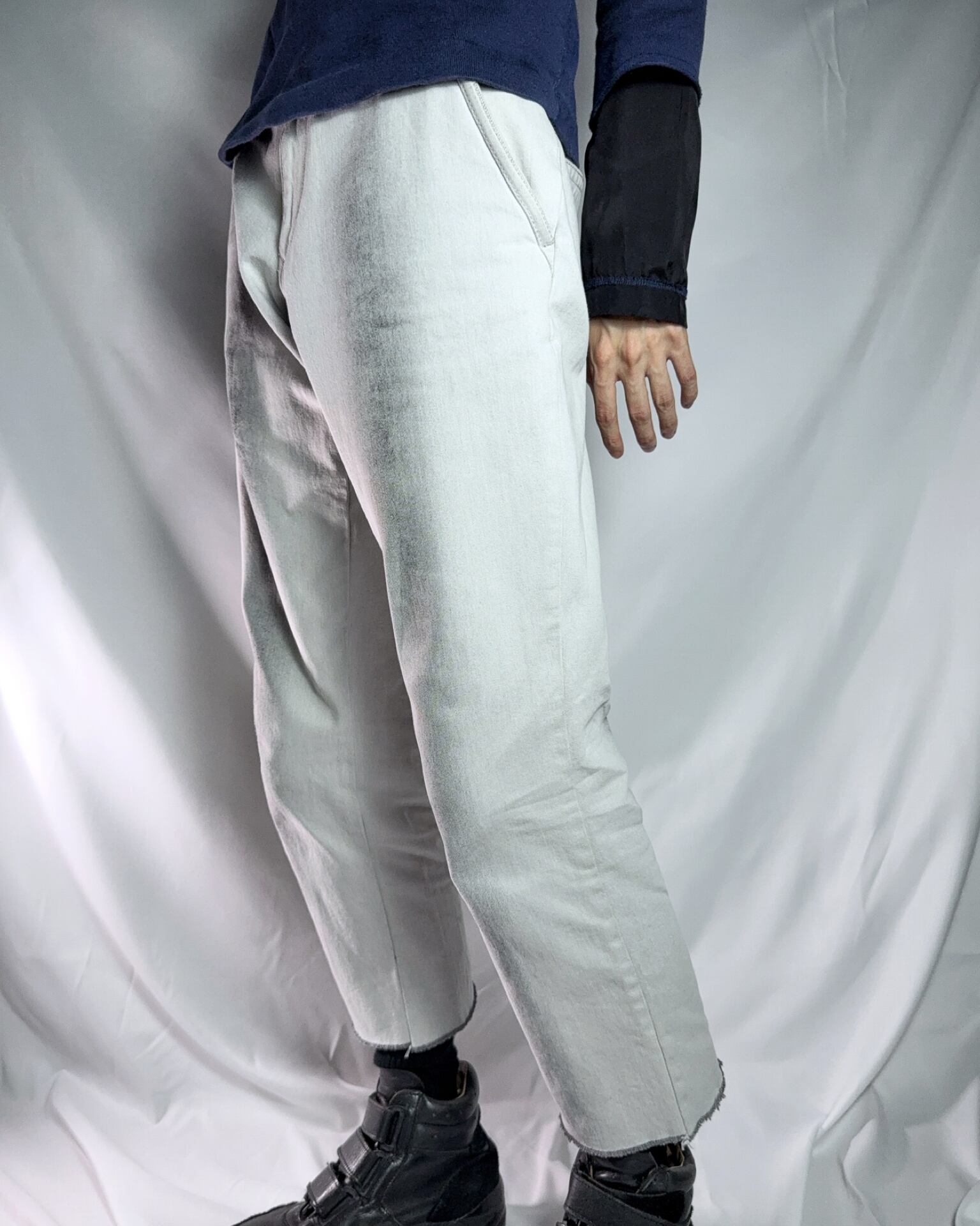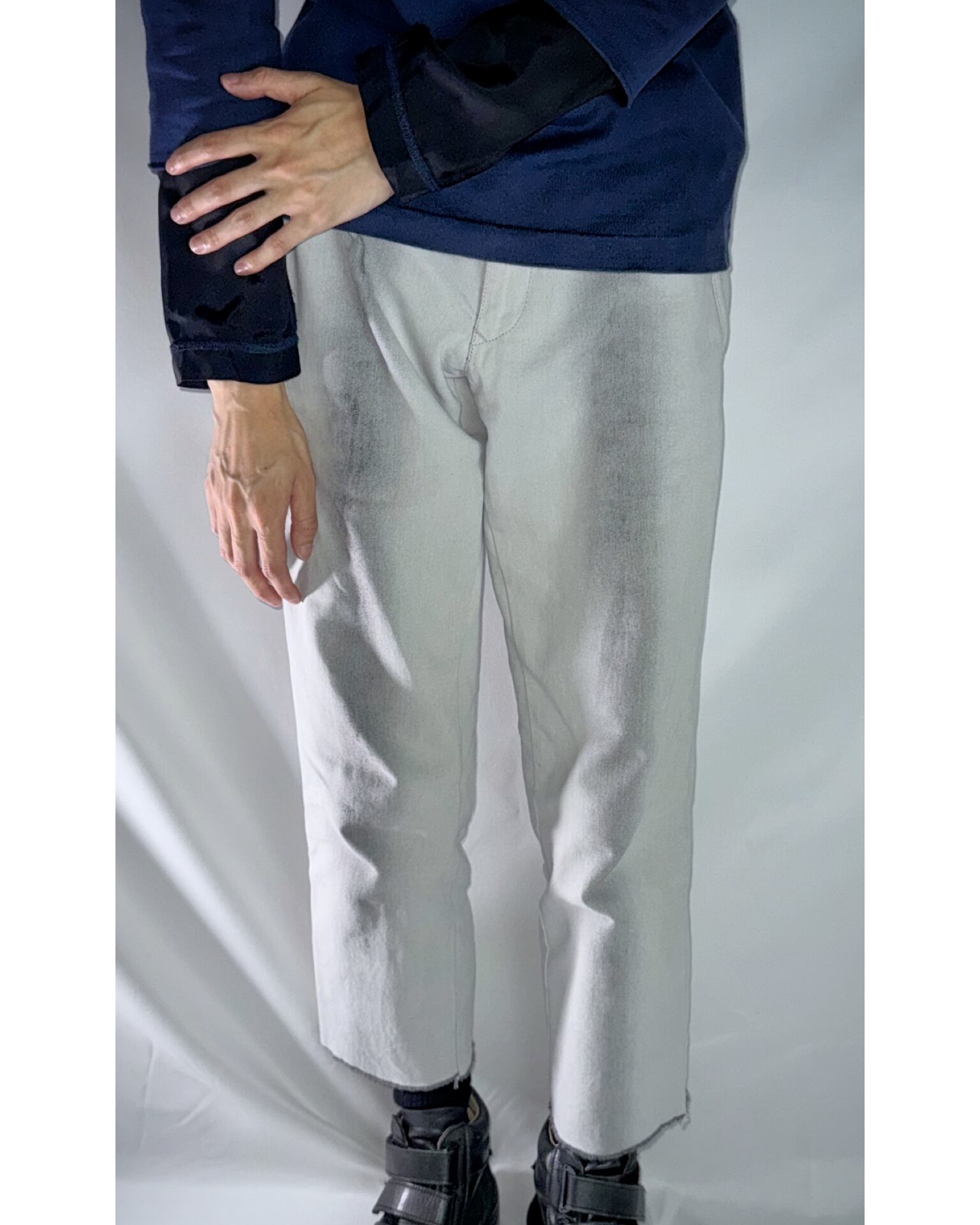一見するとただの白のパンツに黒のフェード加工なのですが、元々は黒のパンツ。