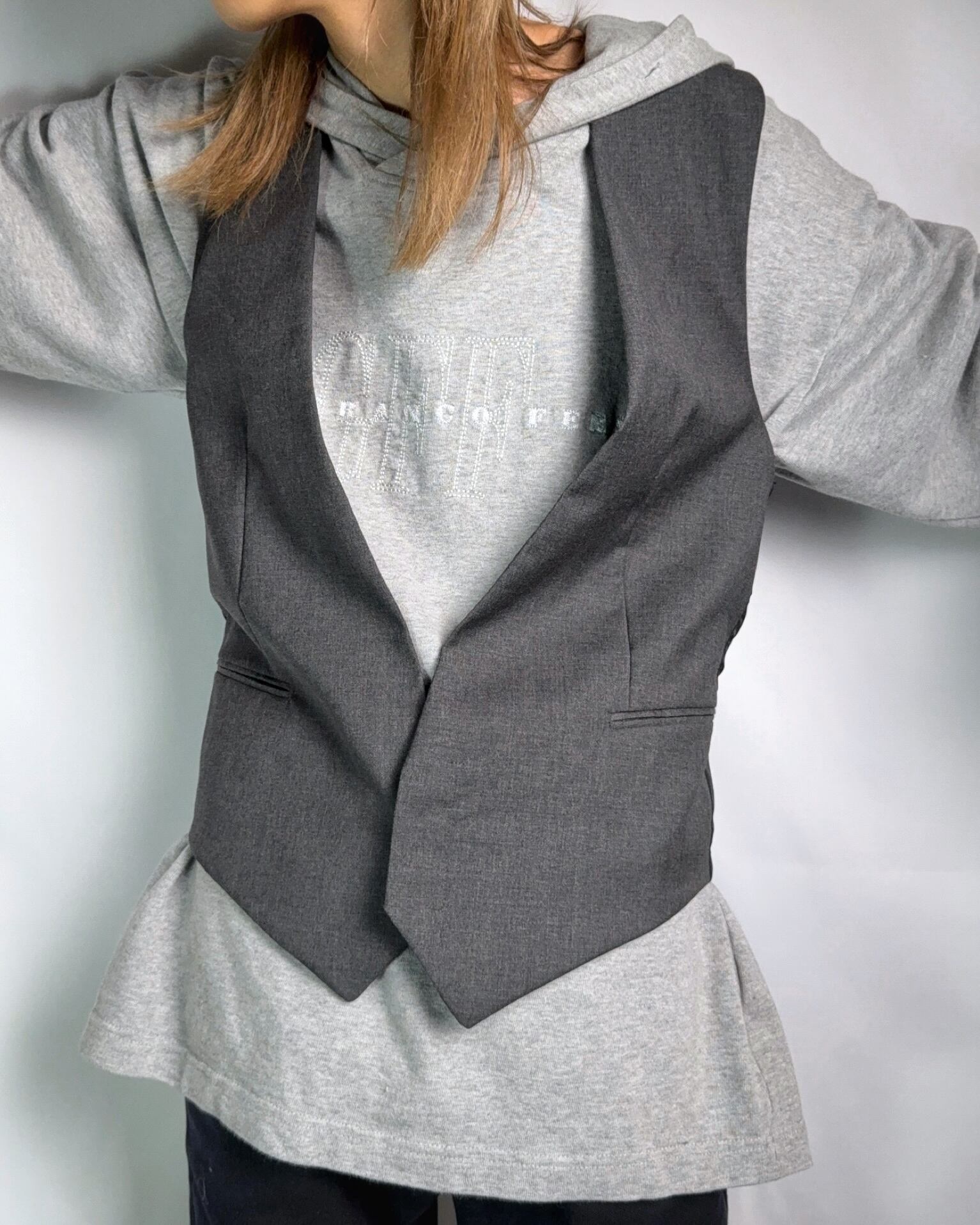 かなり深いVゾーンで仕立てられたウールジレ。