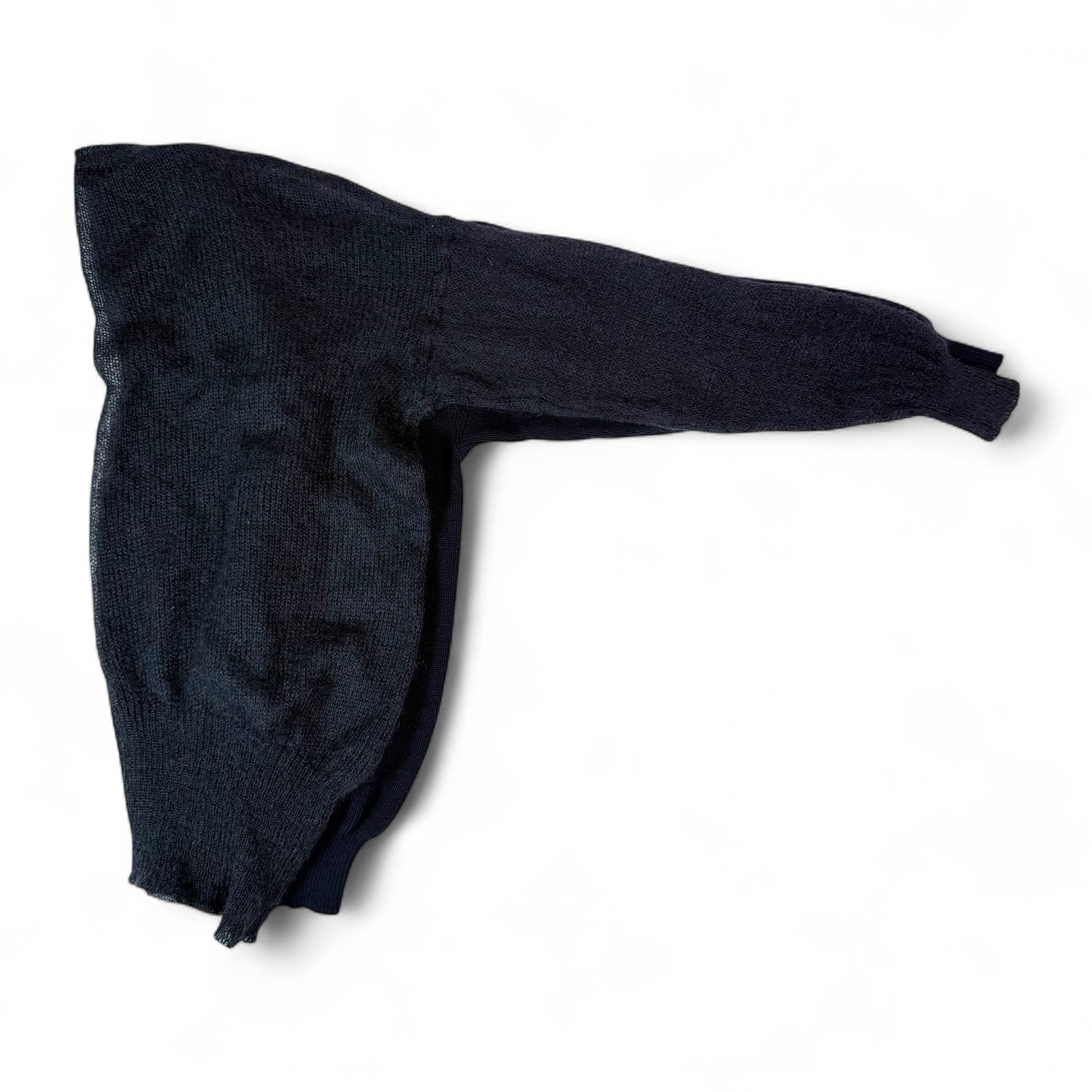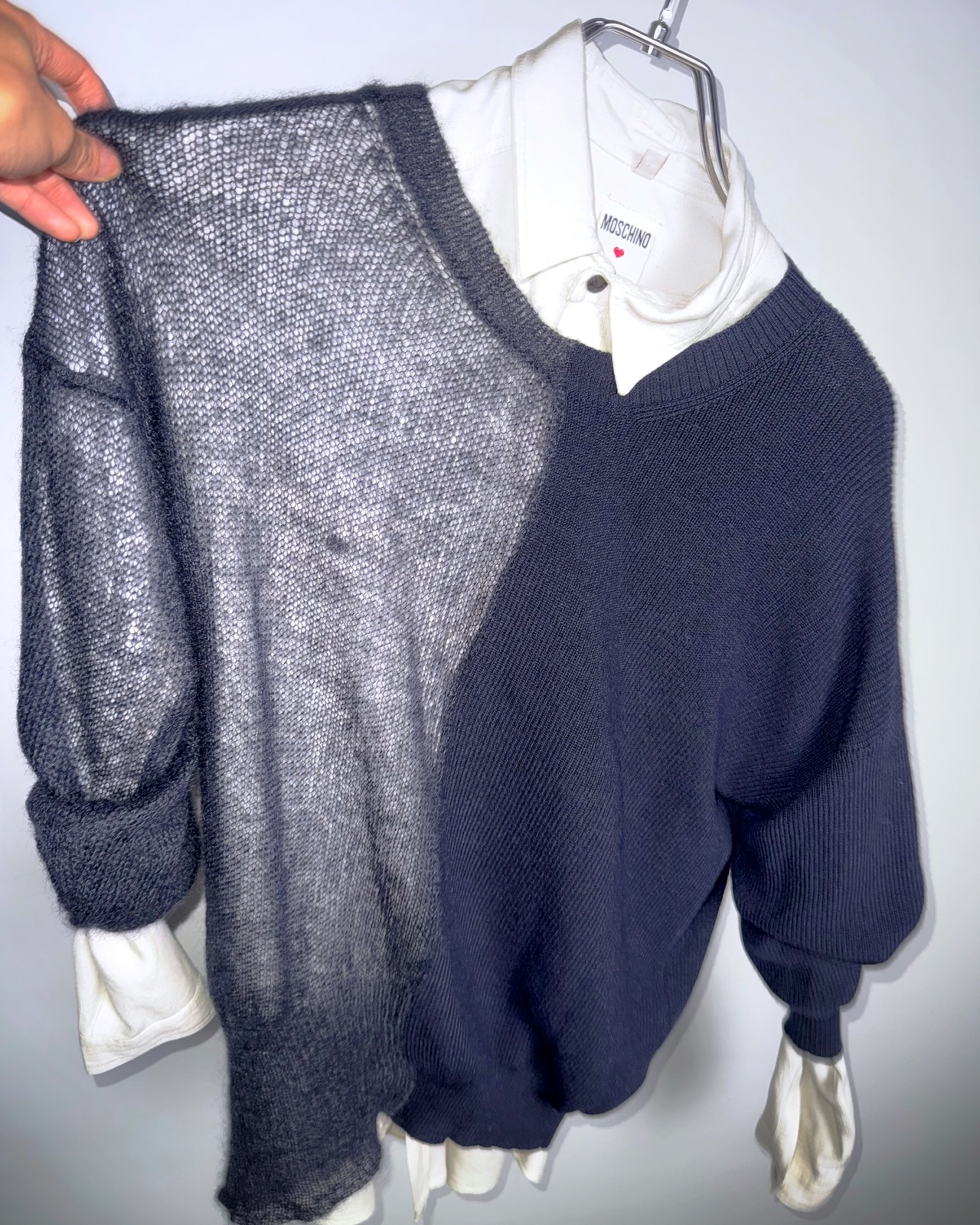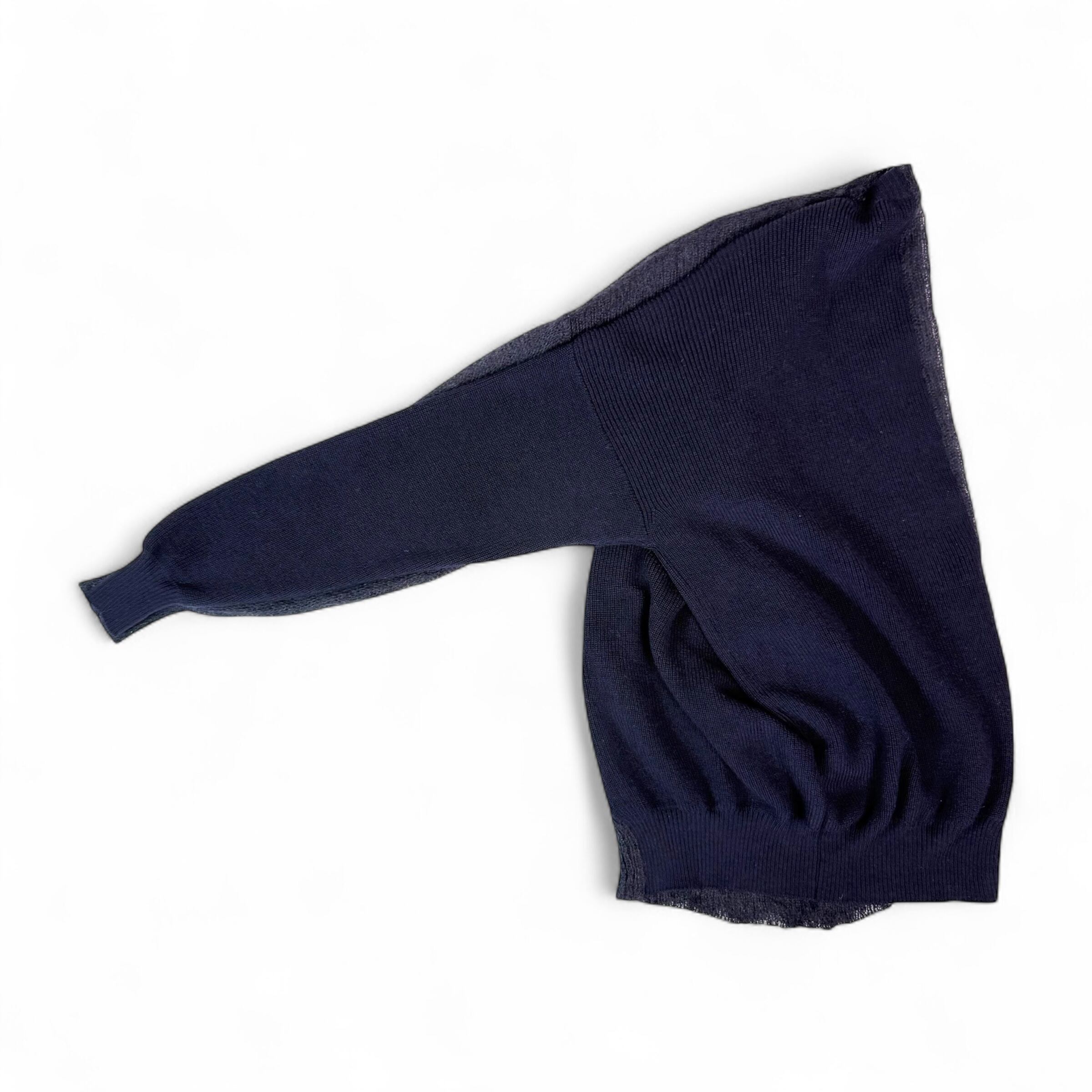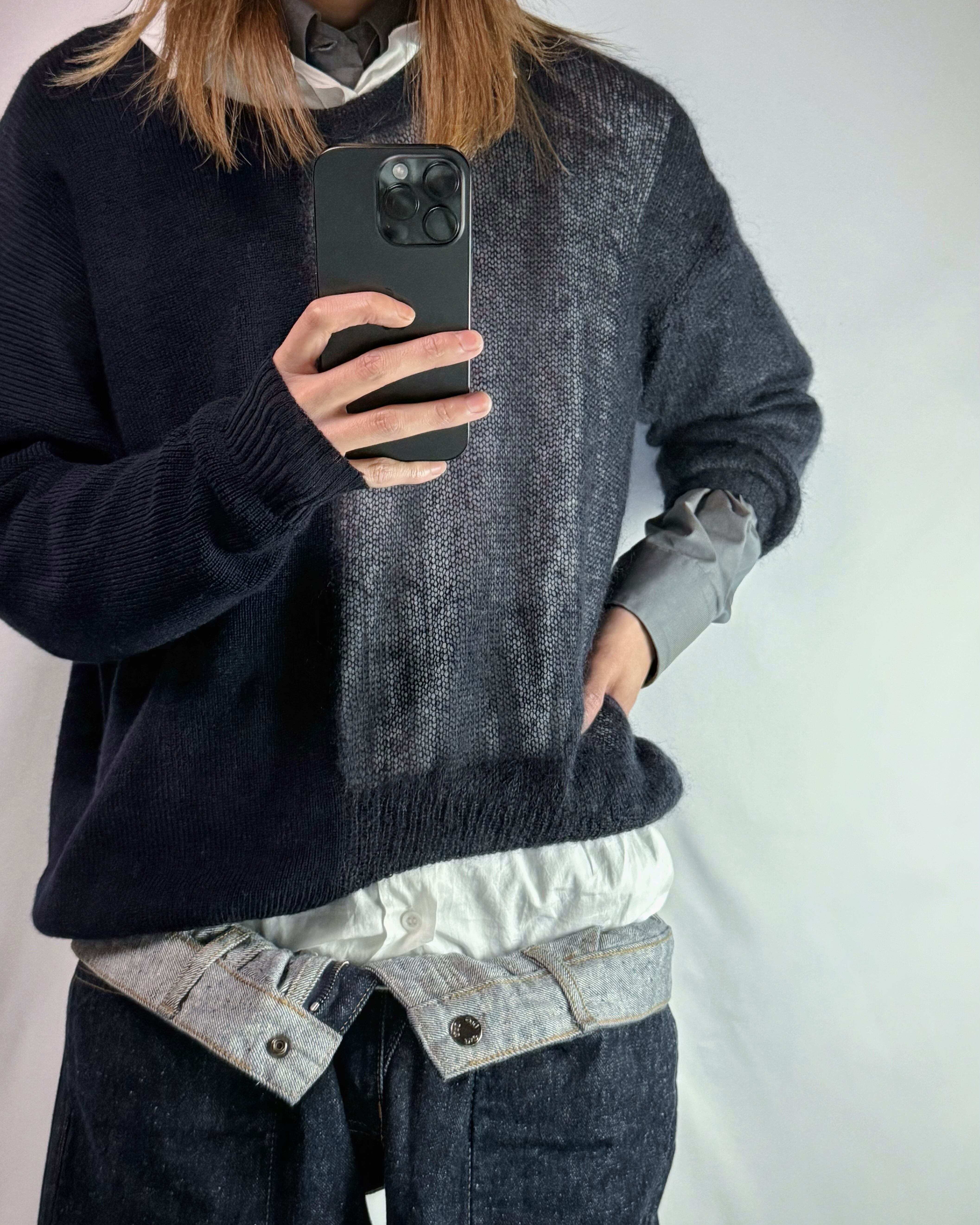 身半分で、編み方の違うニット同士の切り替え。