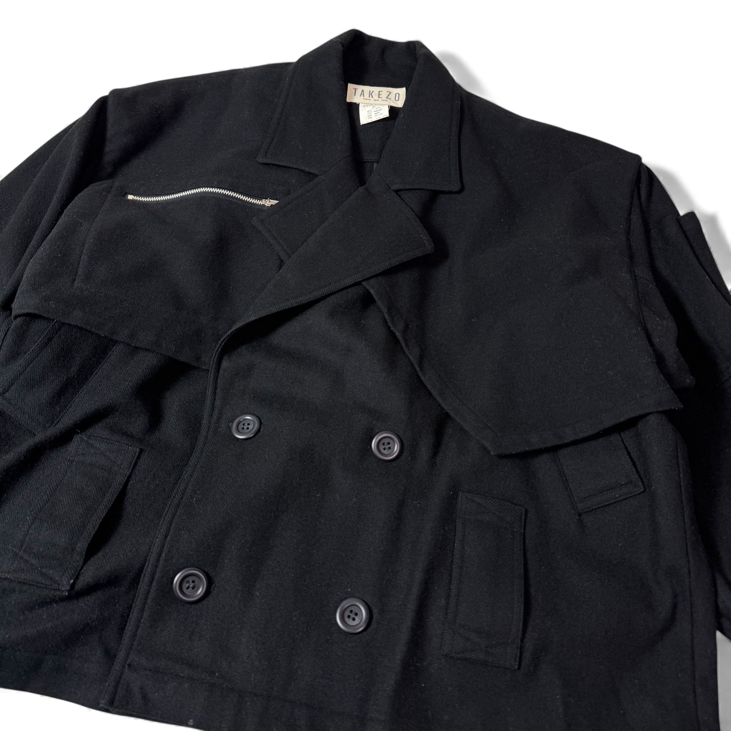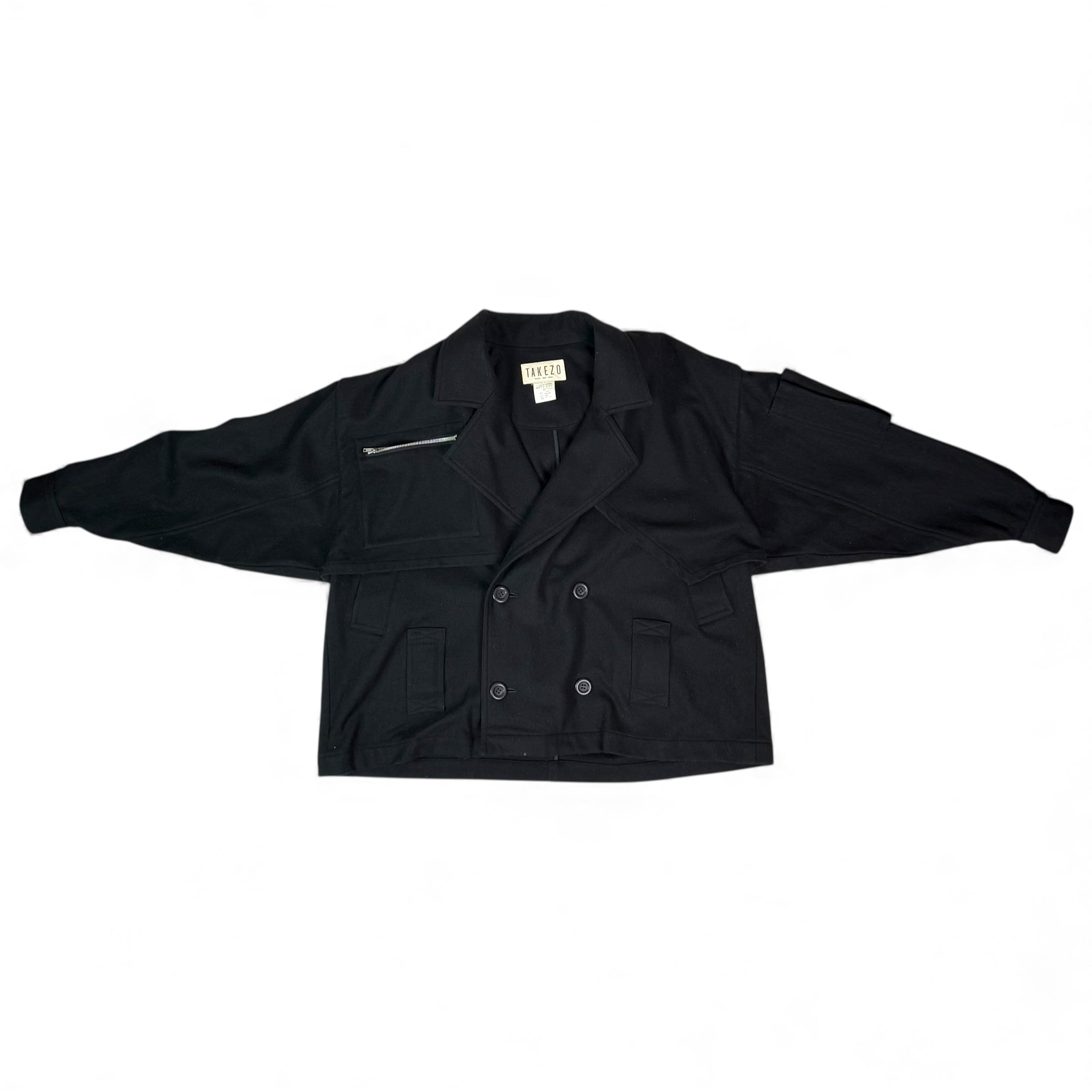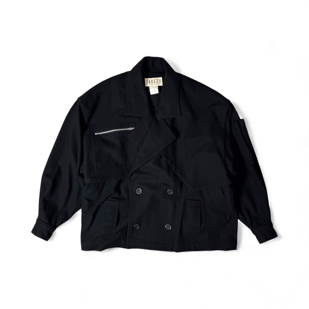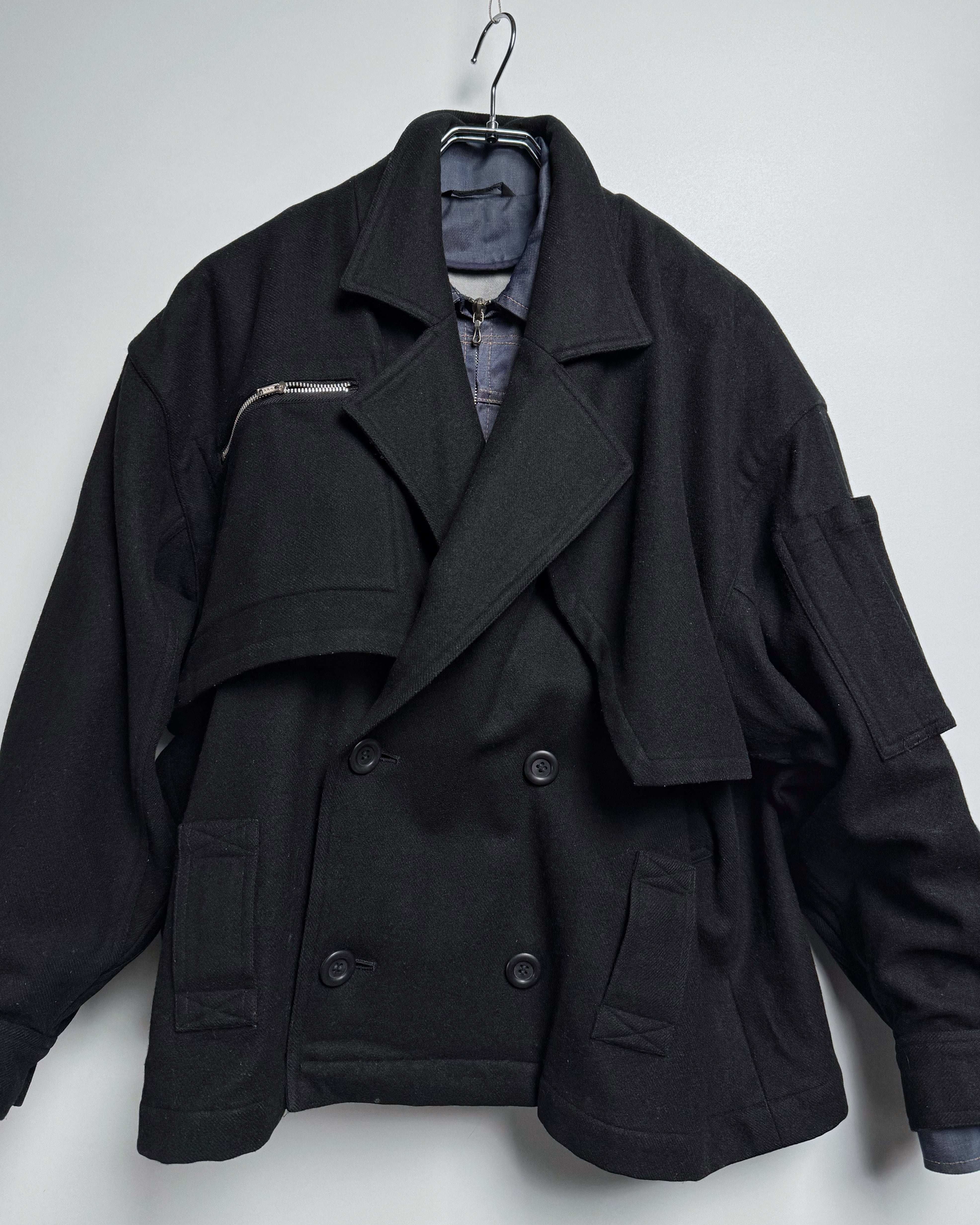 黒でものっぺりせず、立体的に見えるウールショートジャケット。