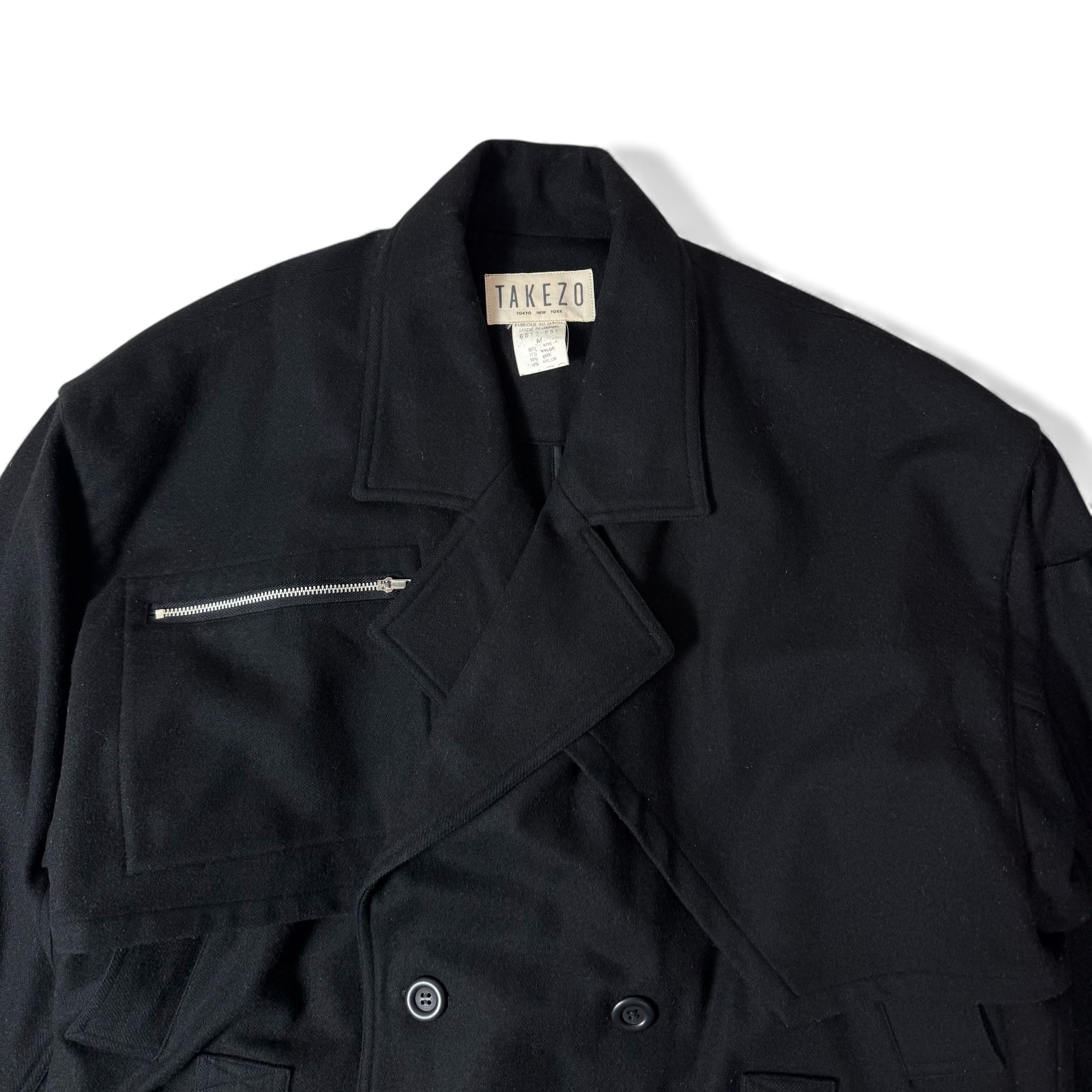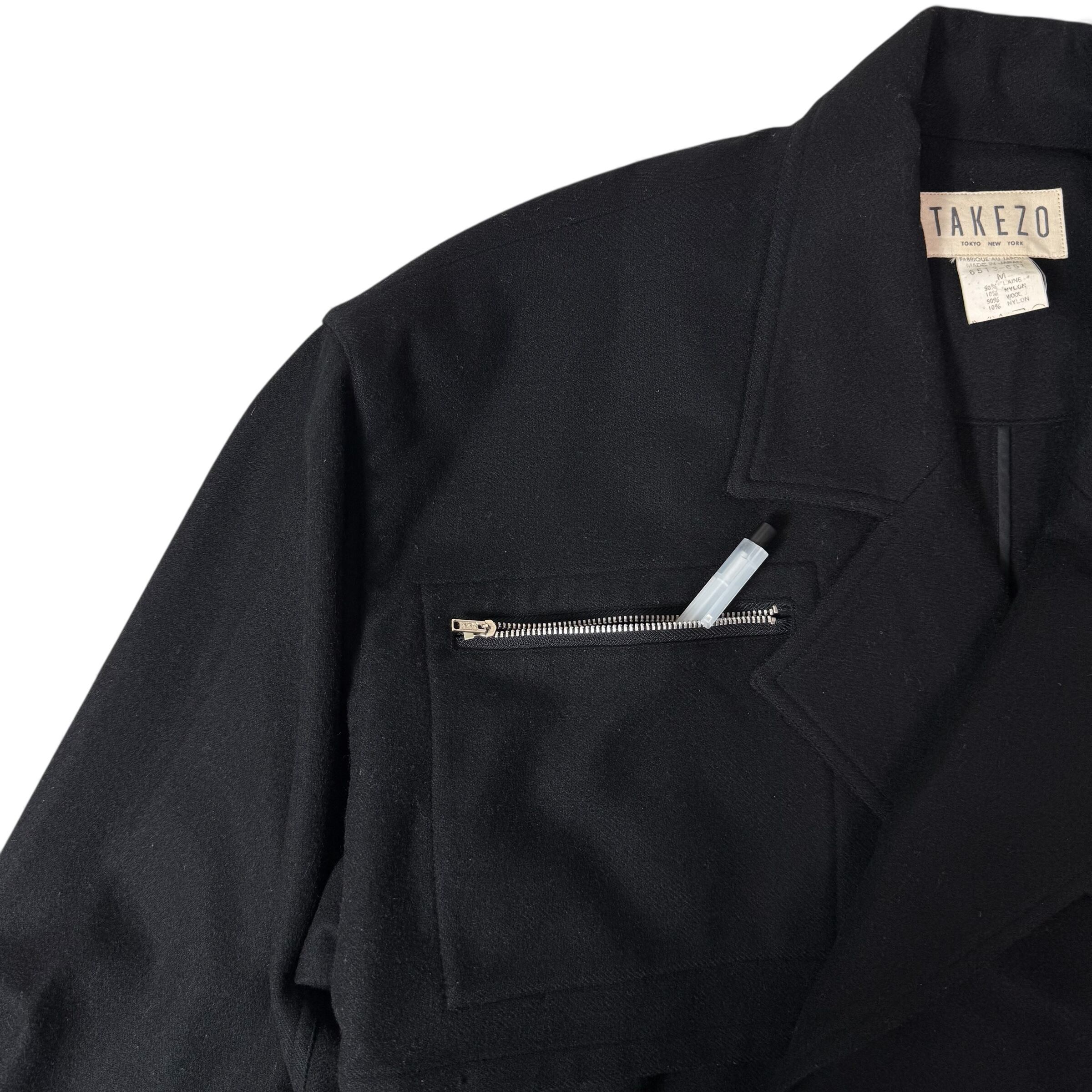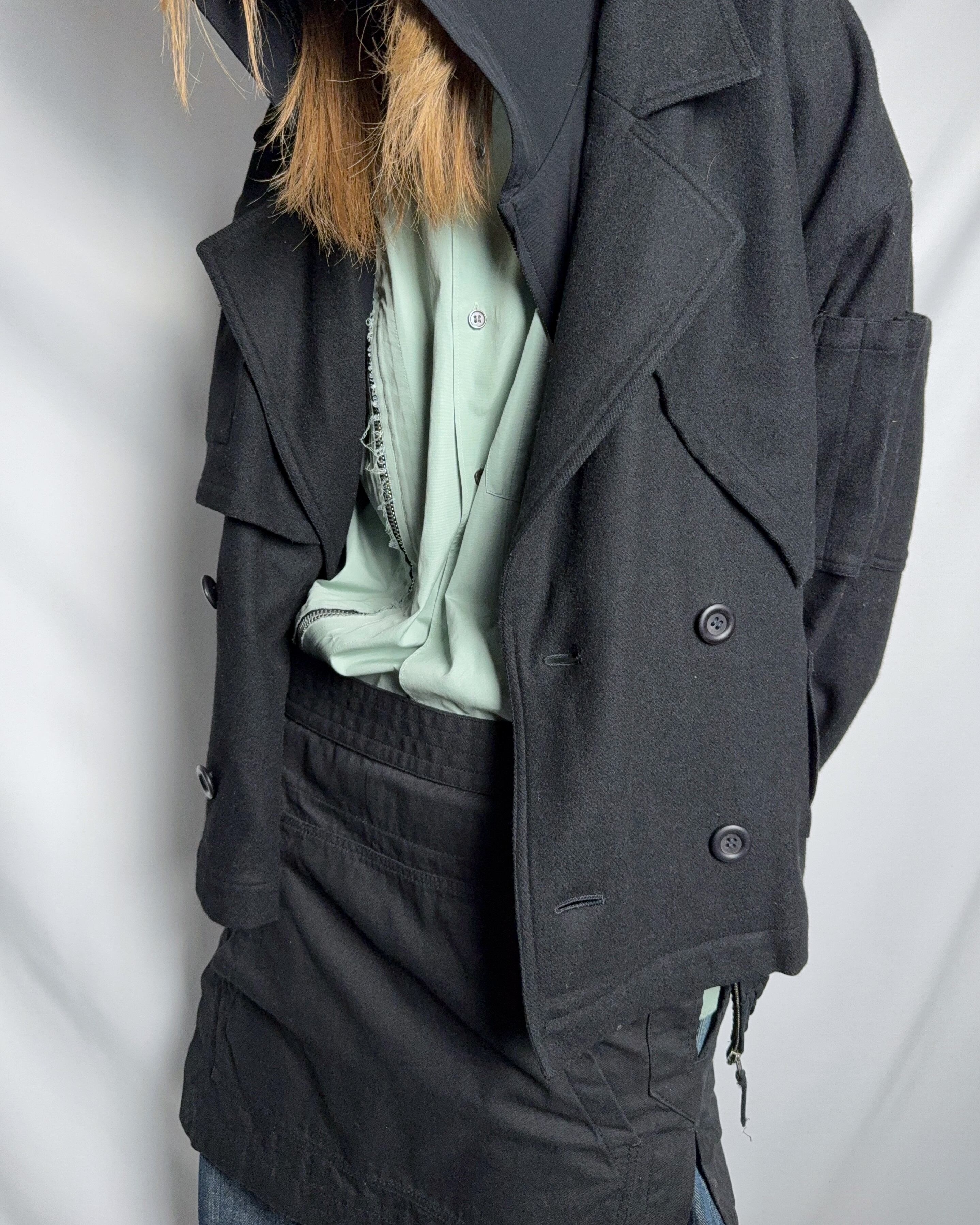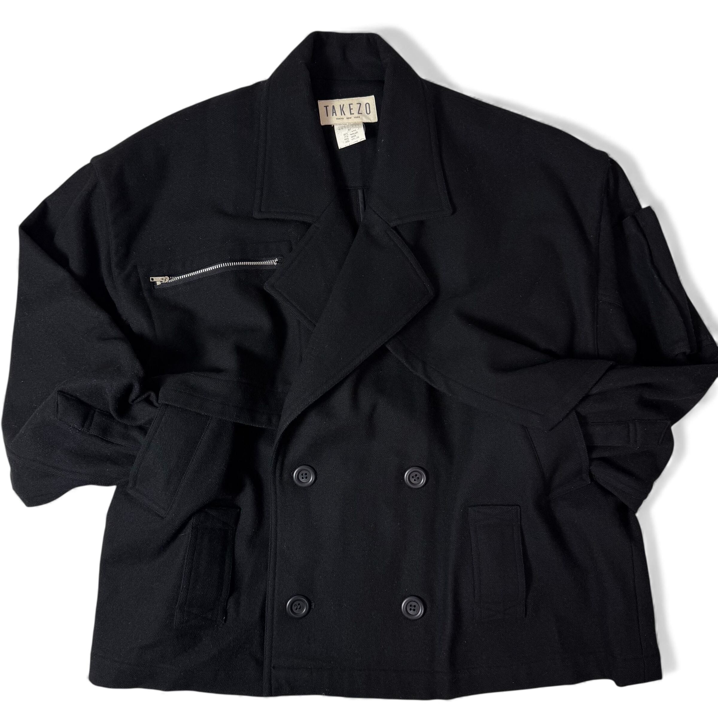 黒でものっぺりせず、立体的に見えるウールショートジャケット。
