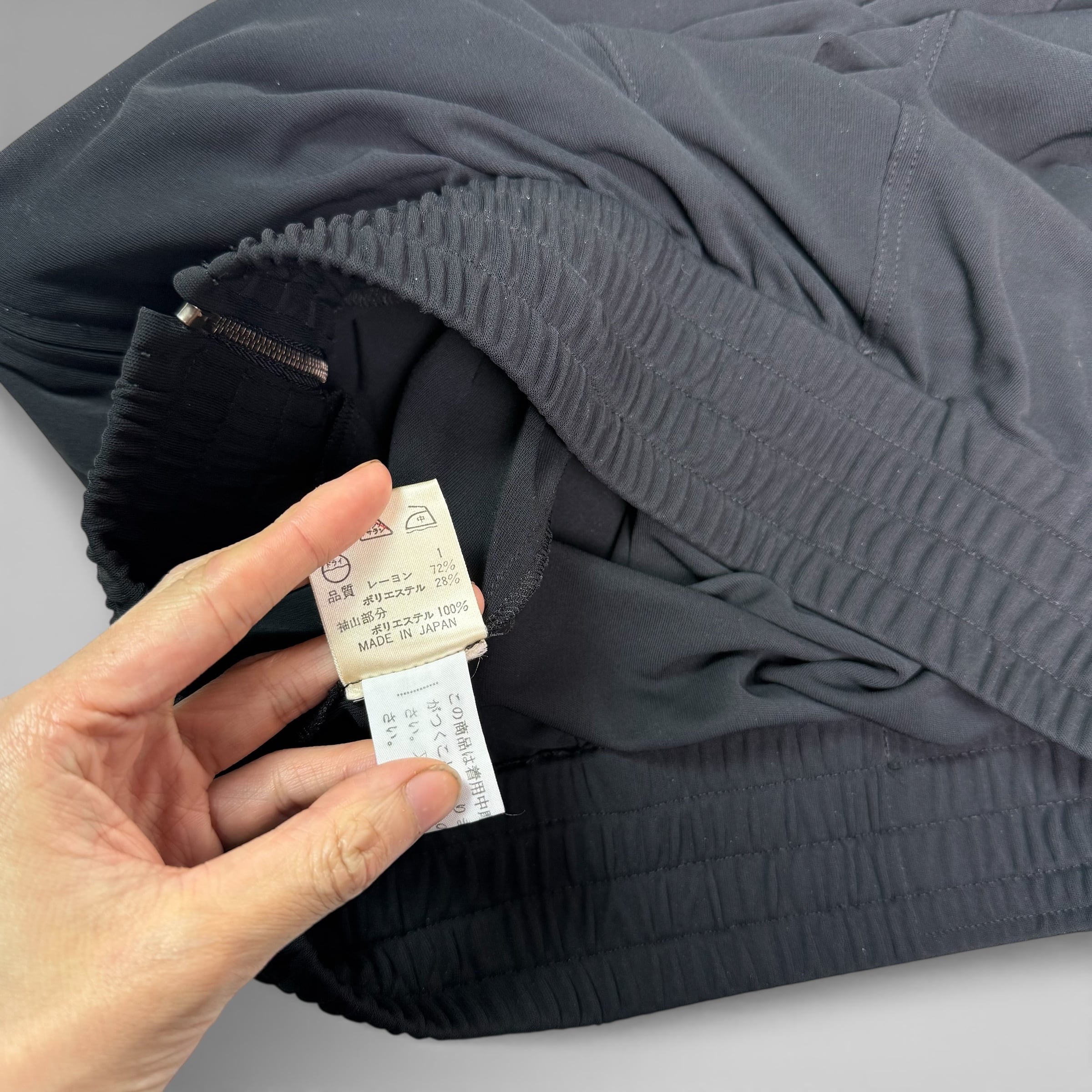 落ち感のあるレーヨン混素材を使用し、身体に沿いながらも過度に主張しないシルエットが特徴です。