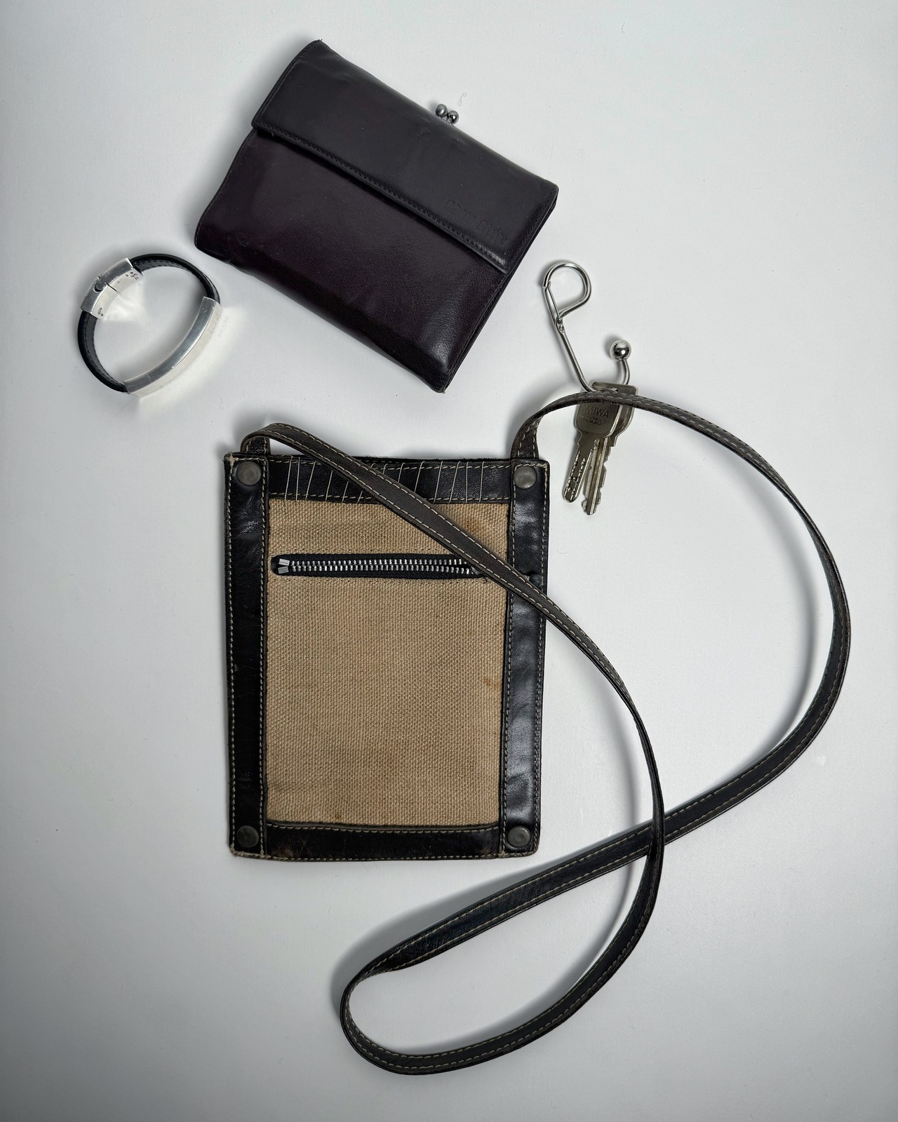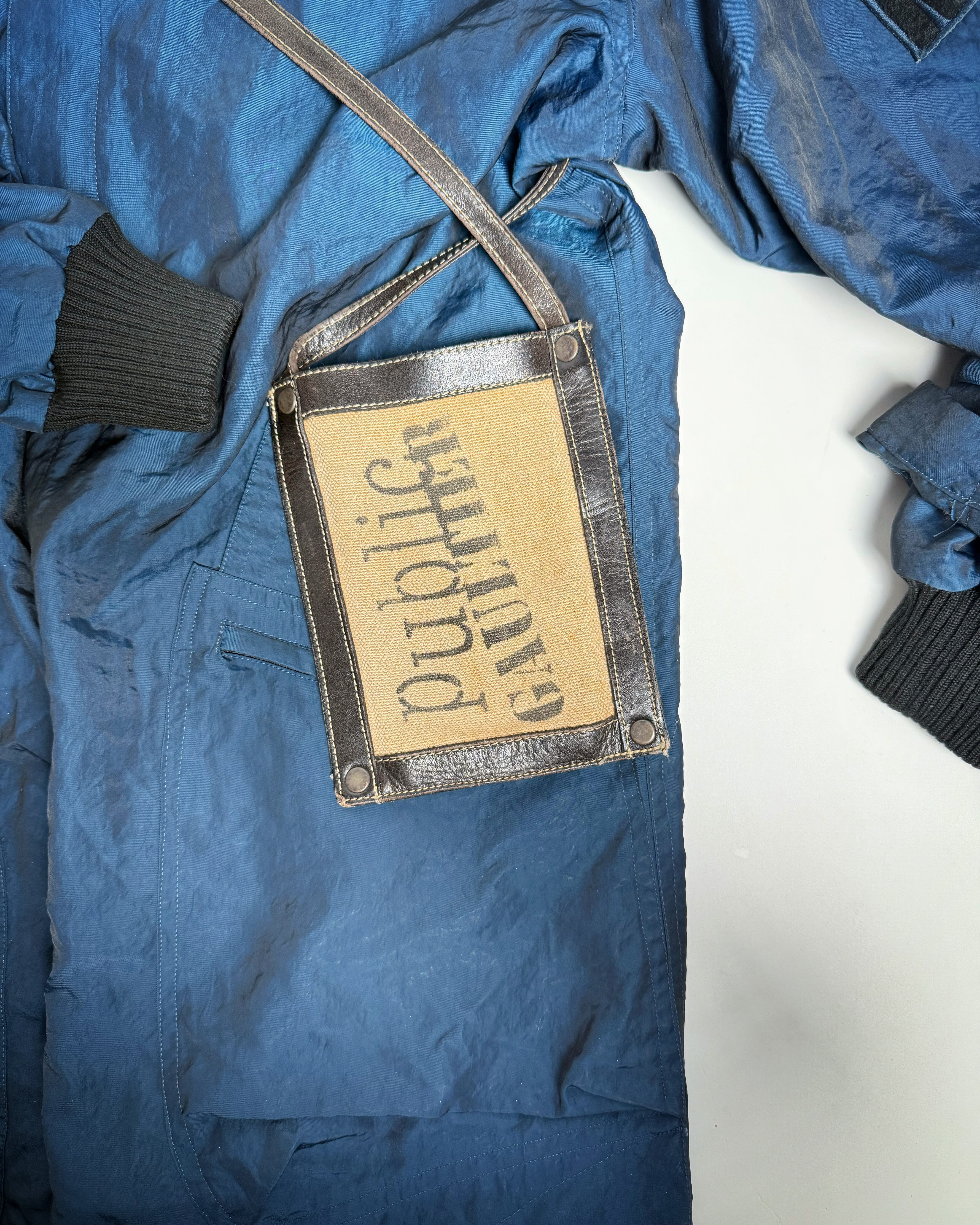 ジャケットやブルゾンの上から斜め掛けすることで、00年代ゴルチエらしい装飾性を自然に加えることも。