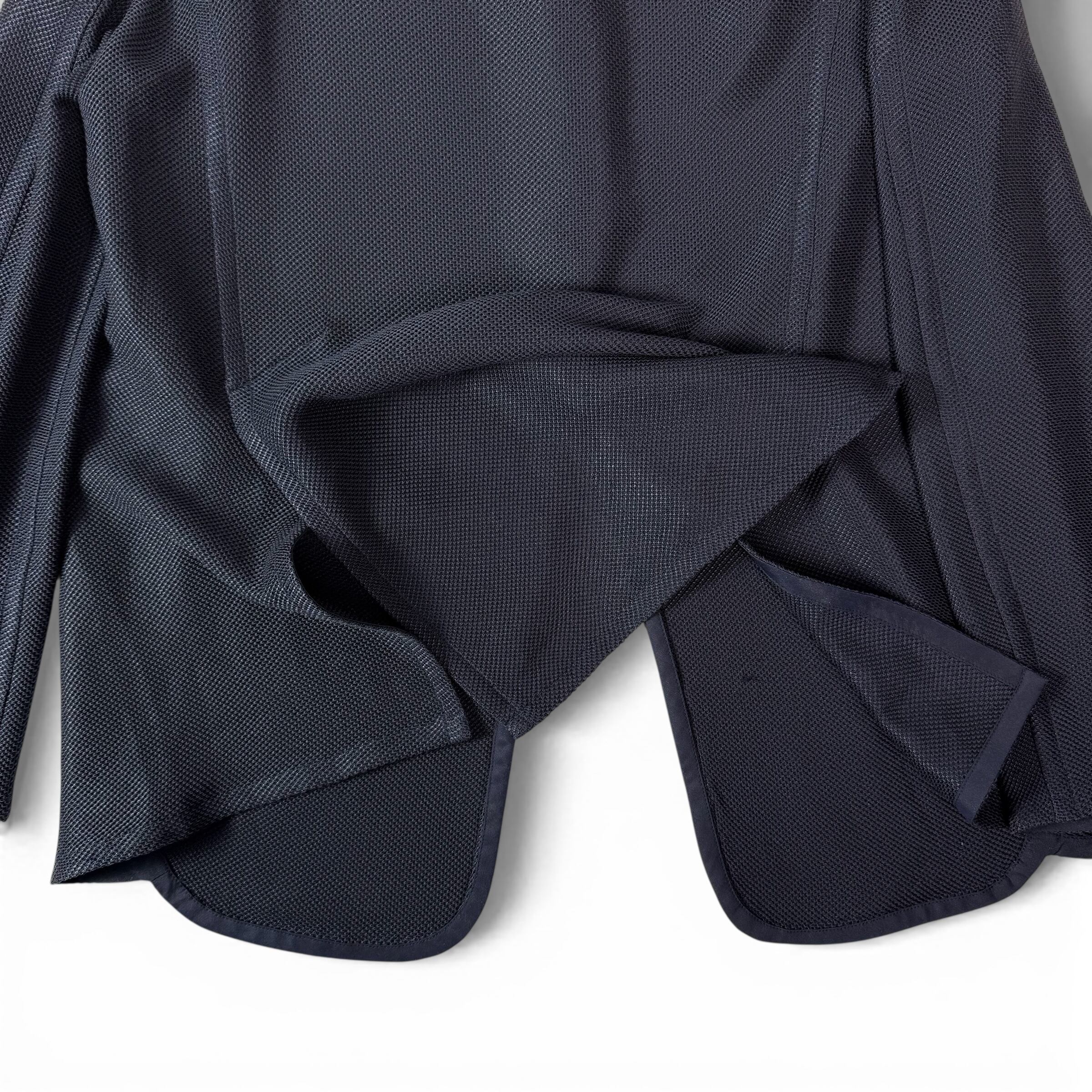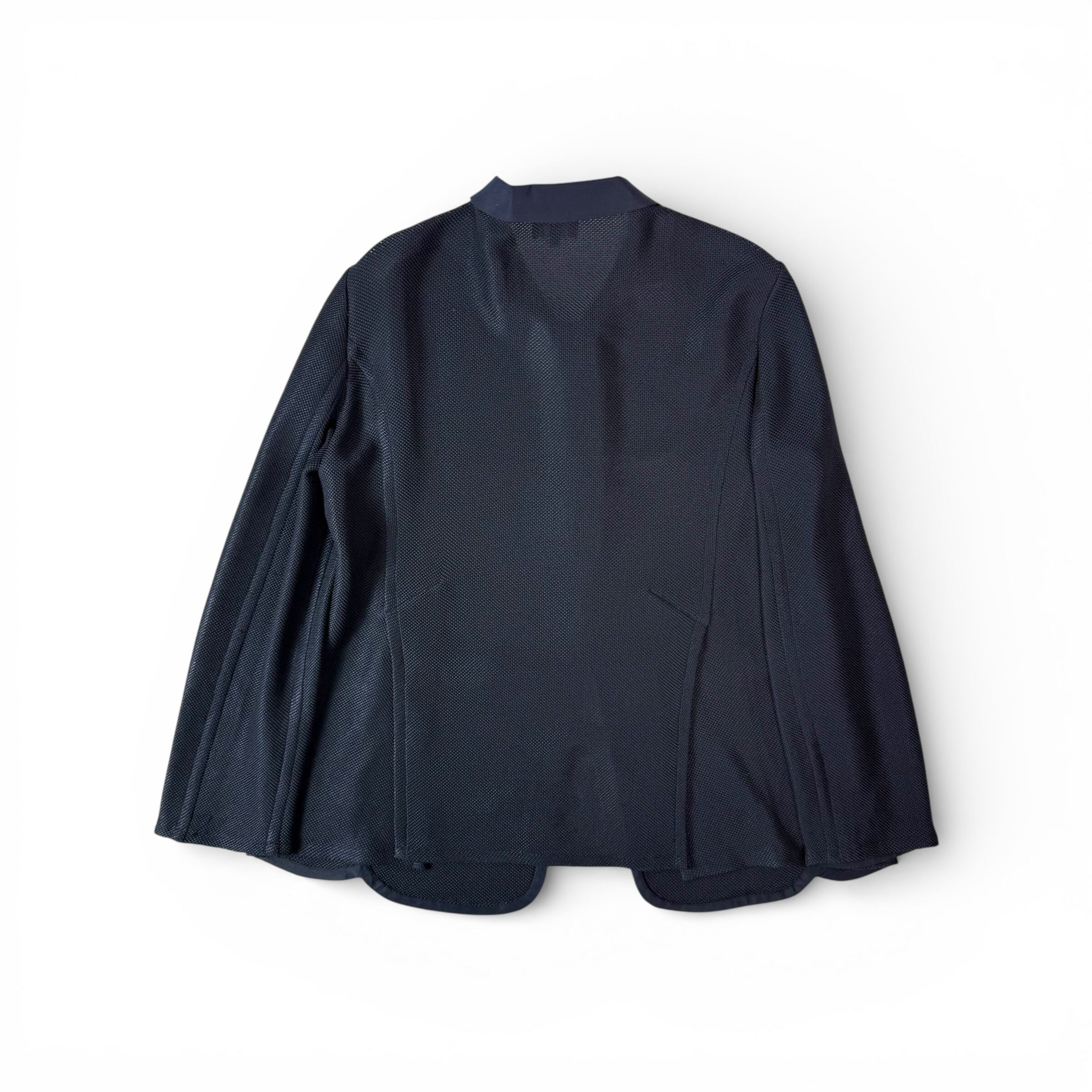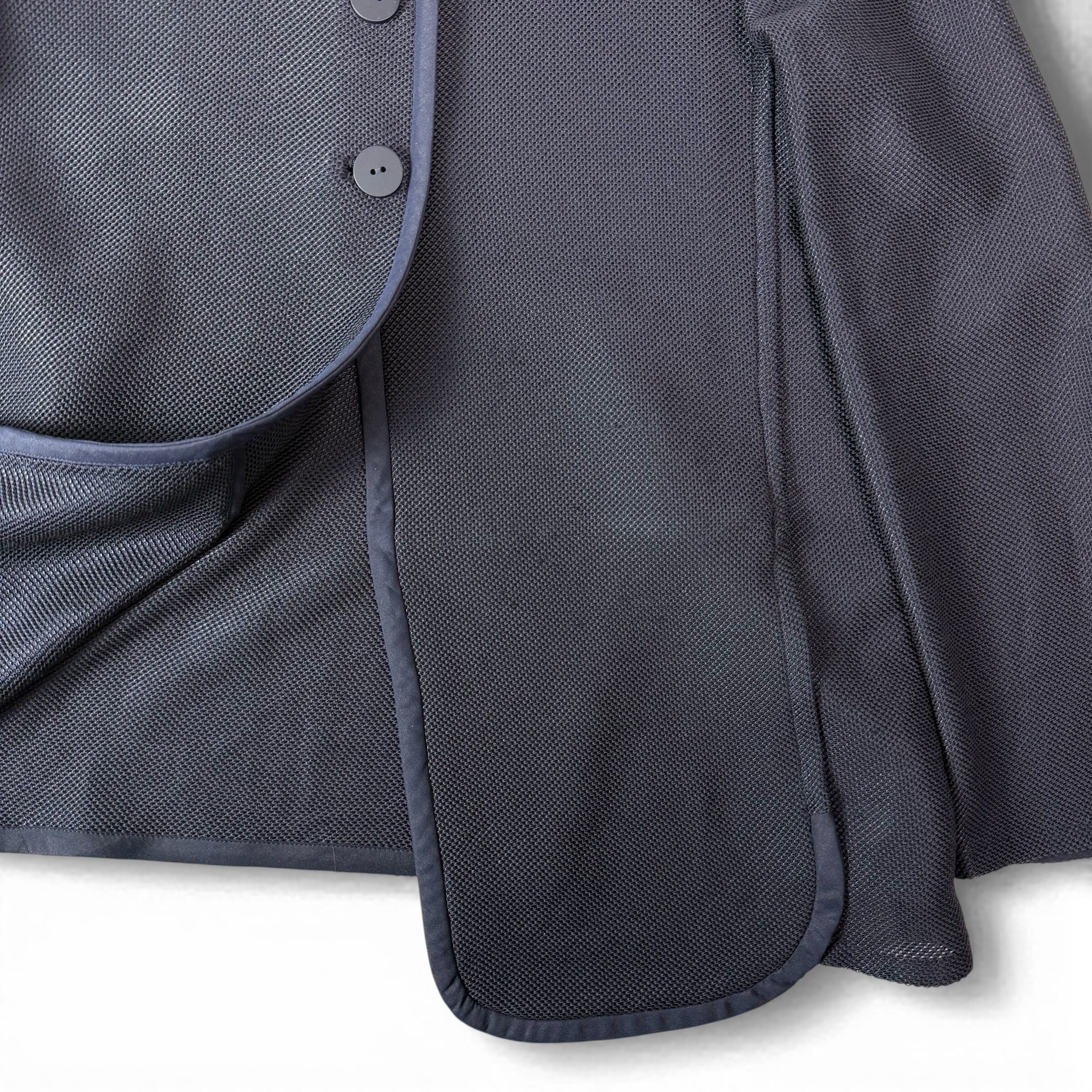 深いネイビーのメッシュジャケット。