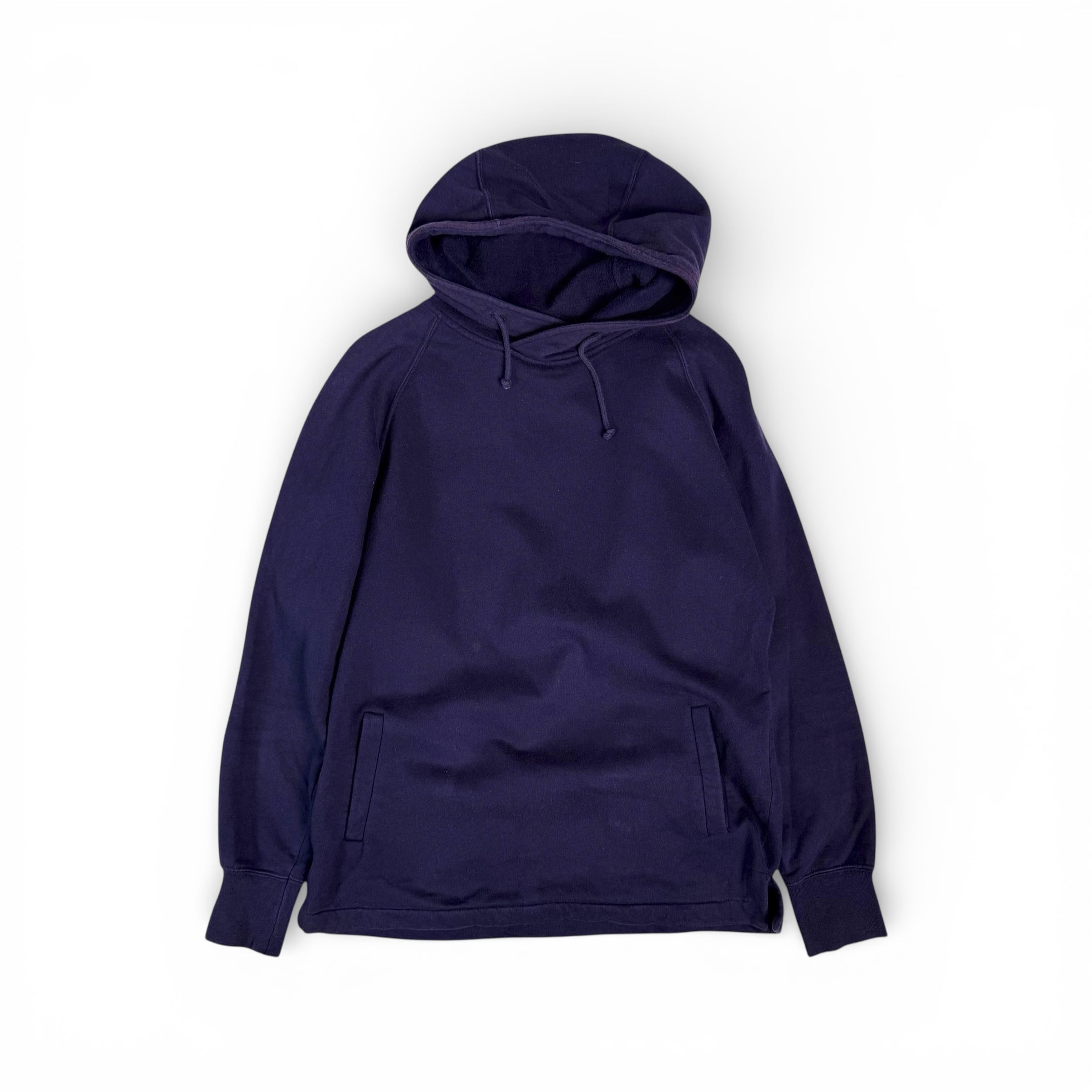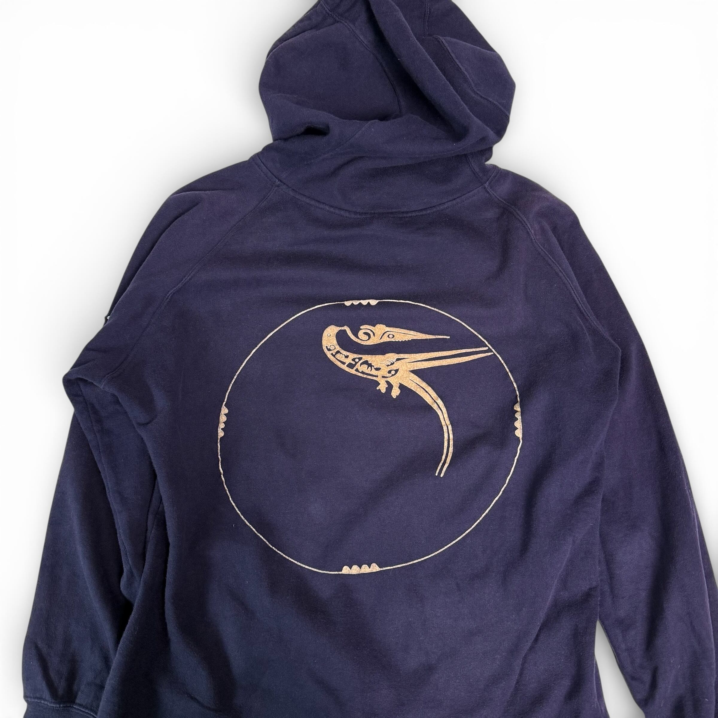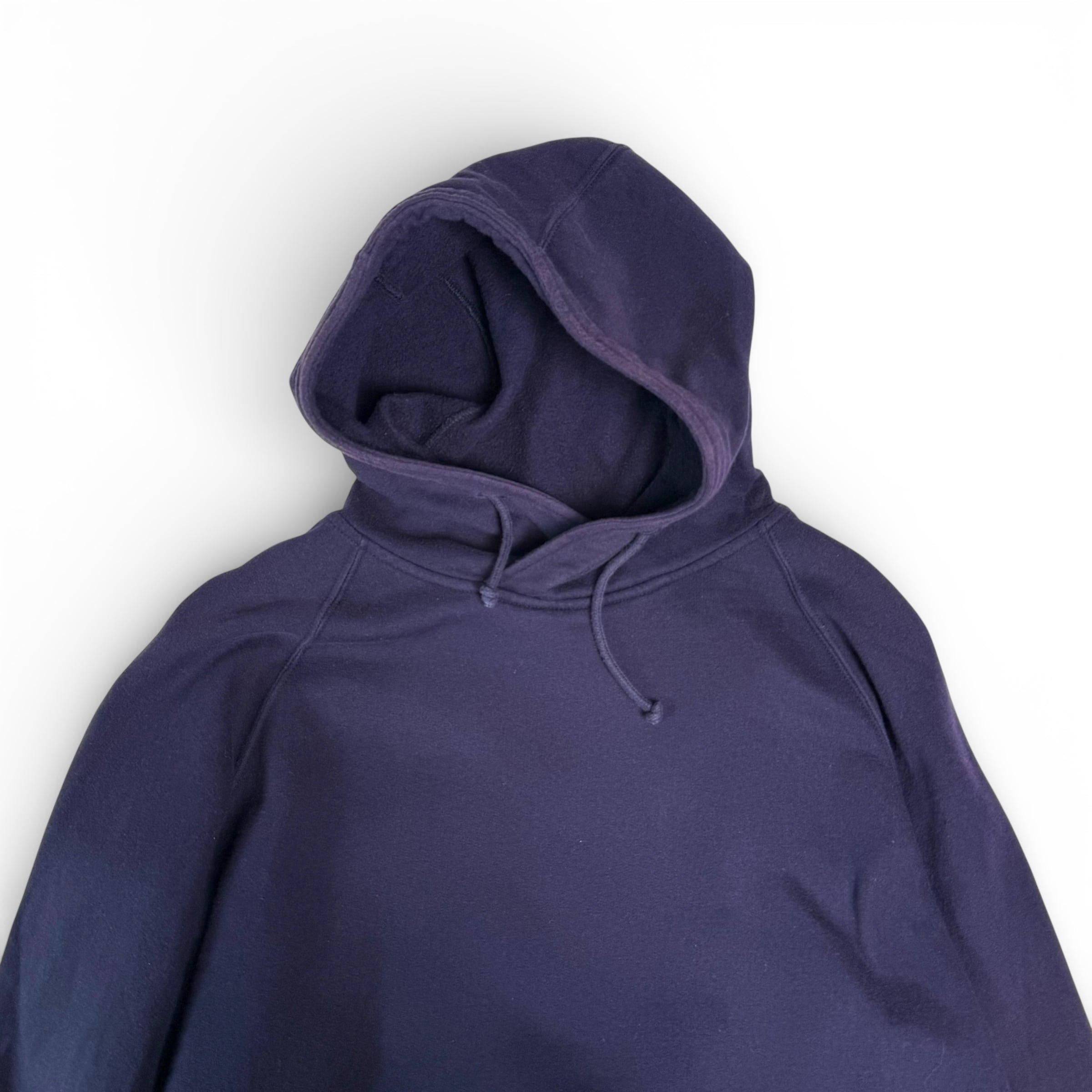 襟のように重なったカラー、少し小ぶりなフード。忍者のような匿名性を持ったフーディー。