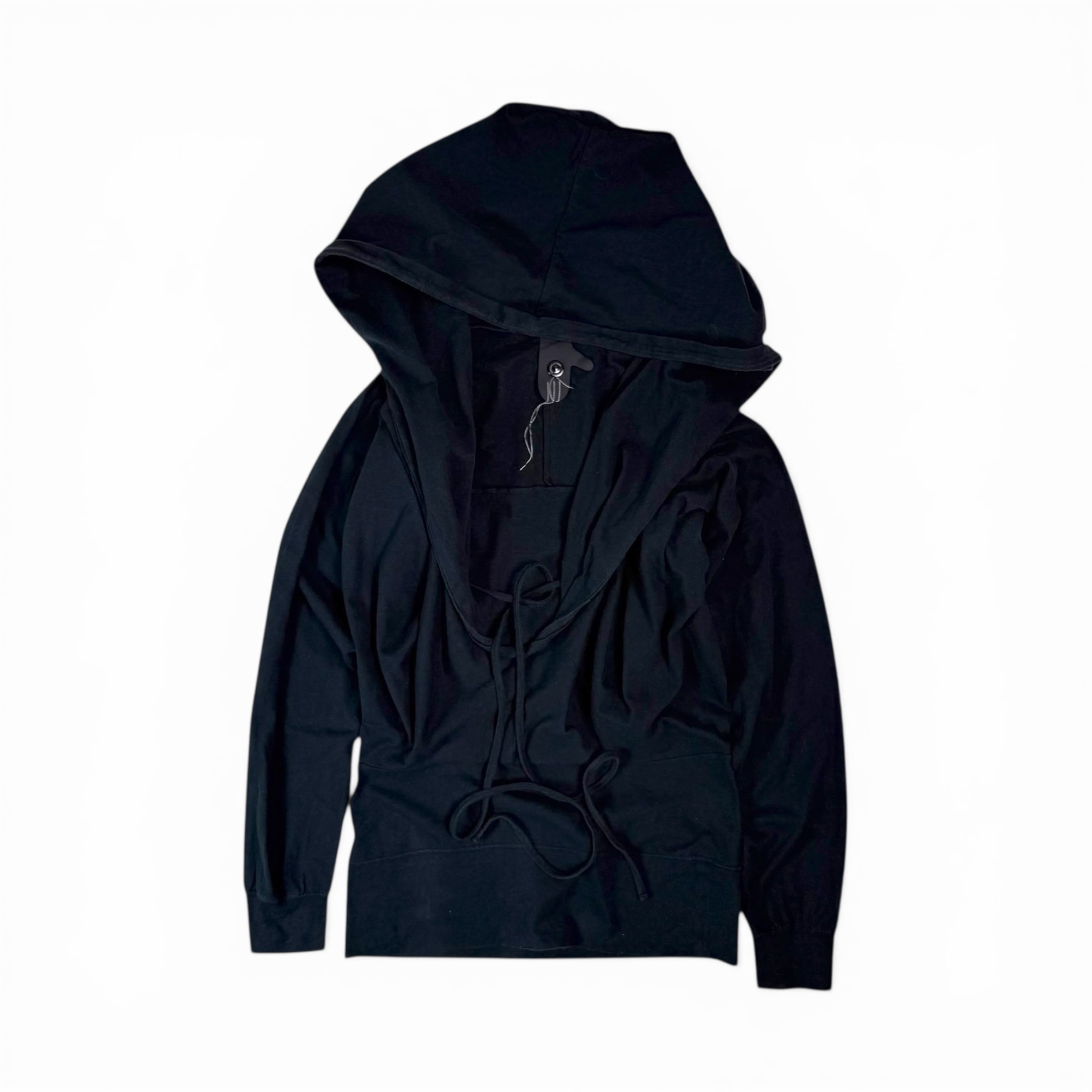 フードを結ぶと、レディースウェアらしい見え方。結ばず垂らしていてもかっこいいです。