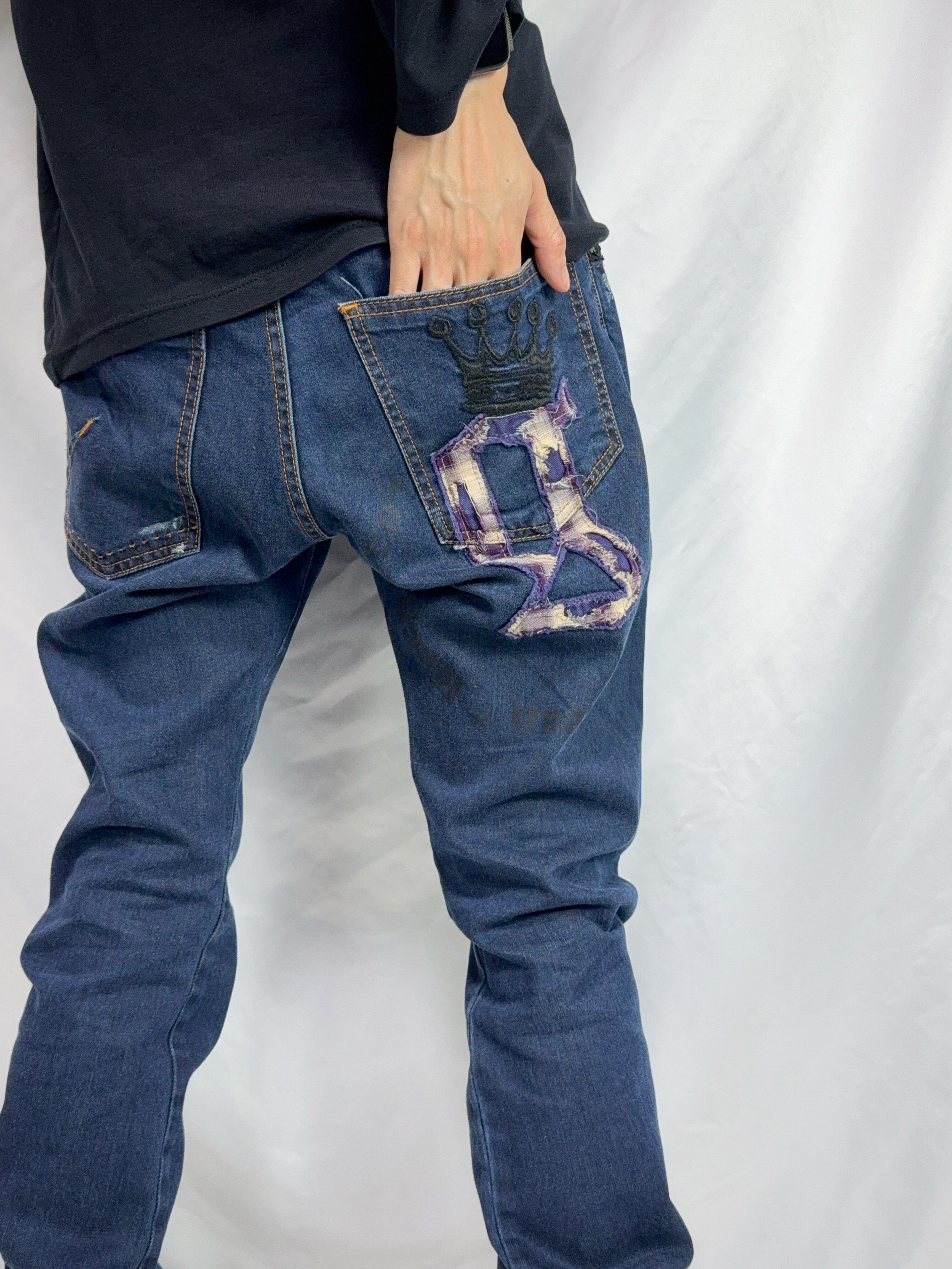 バックはポケットの形がはみ出すようなパッチワークデザイン。