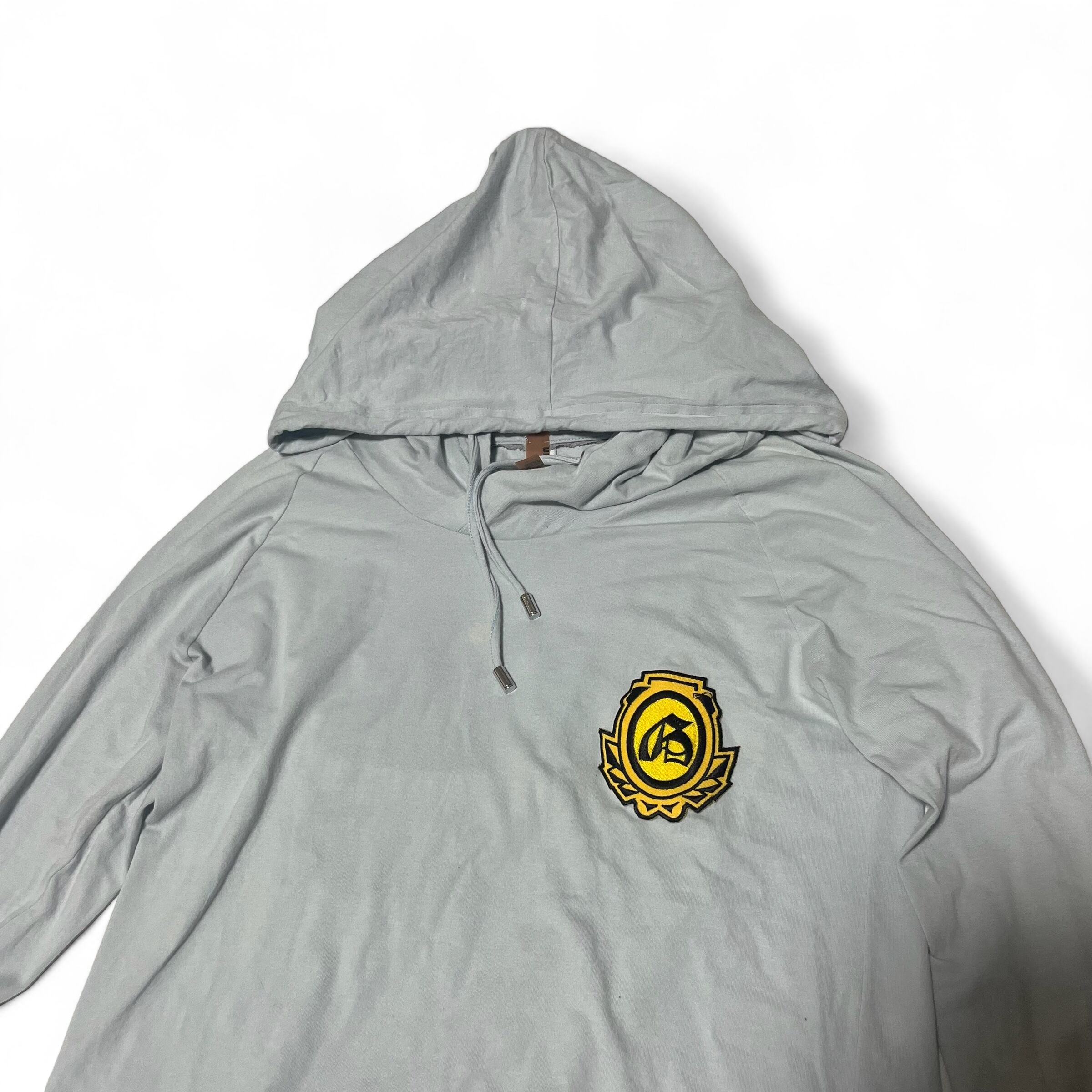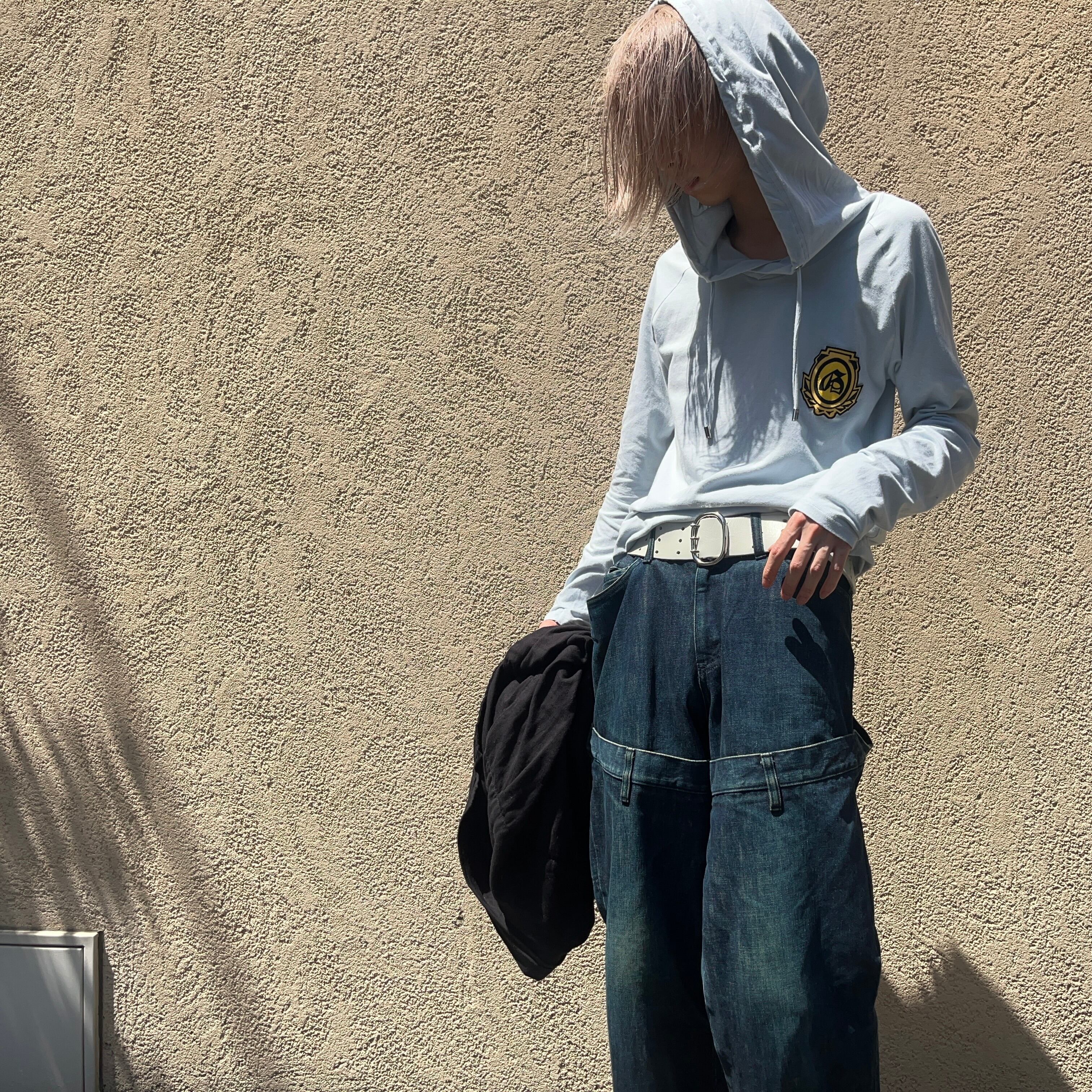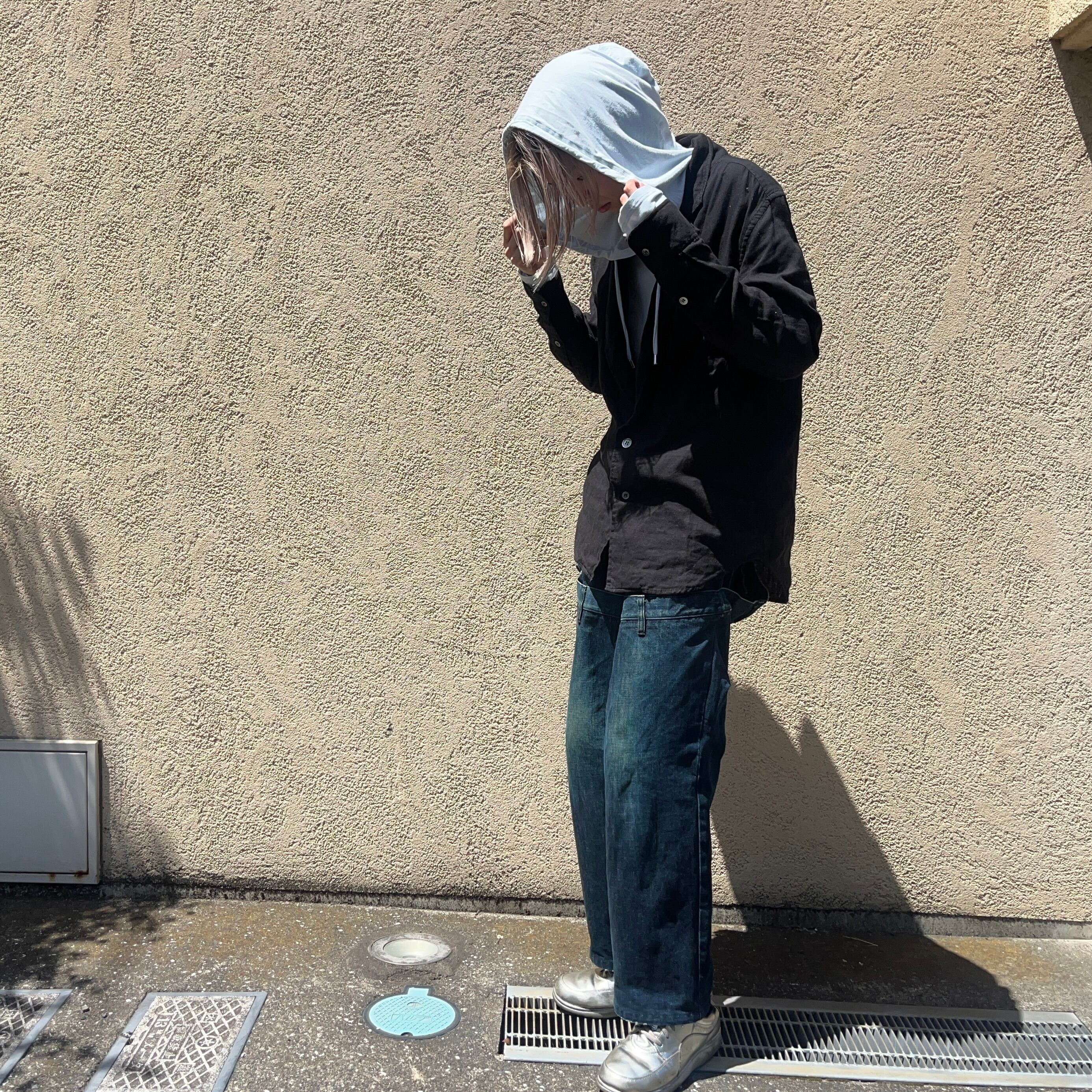 ボディに比べて大きめのフーディー、裾には着丈を変えて楽しめるドローコード、フーディーの中ではあまり見ない首元が少し開いたデザイン、、、、