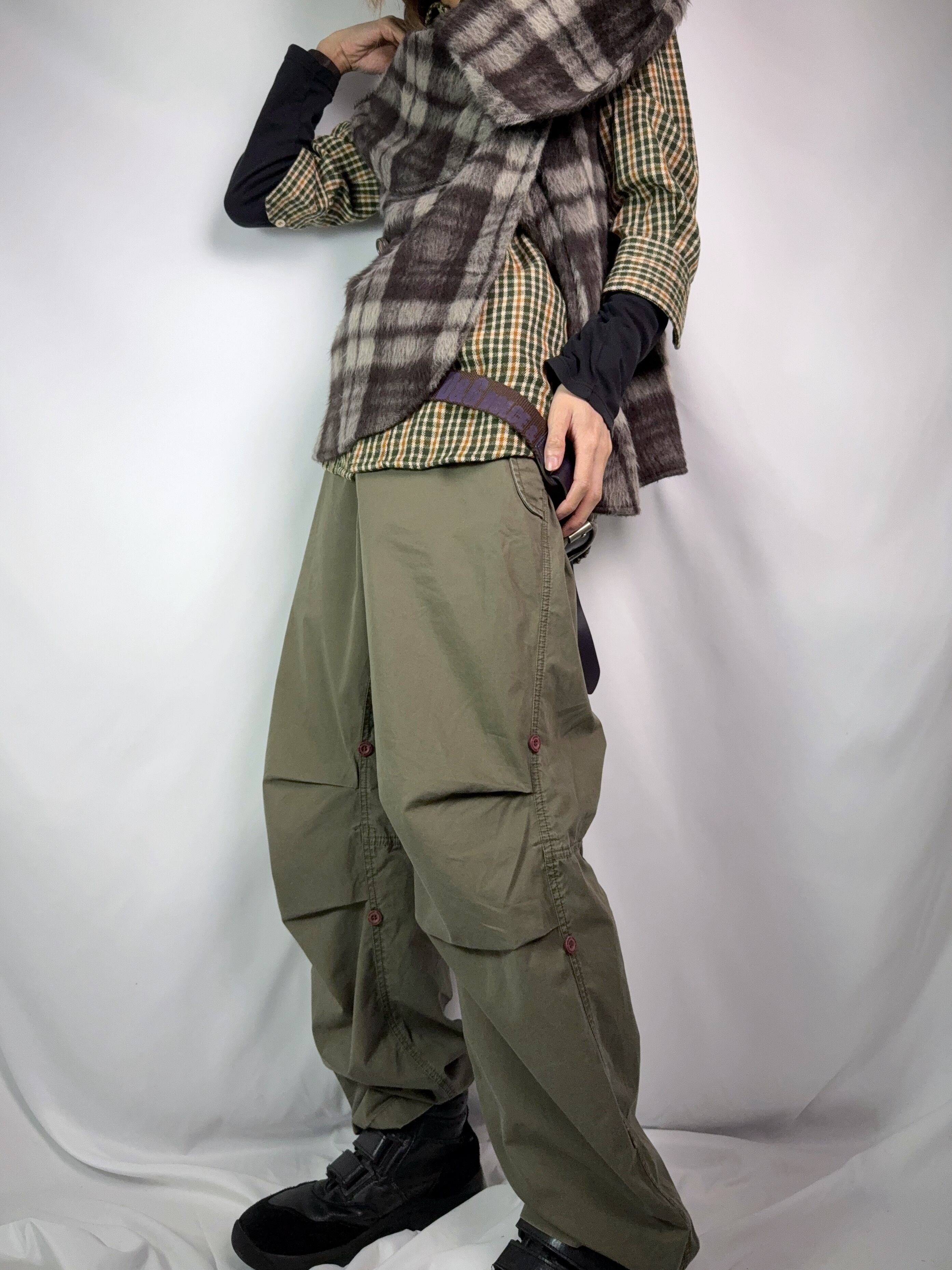 ミリタリーディティールがふんだんに使われているパンツ。